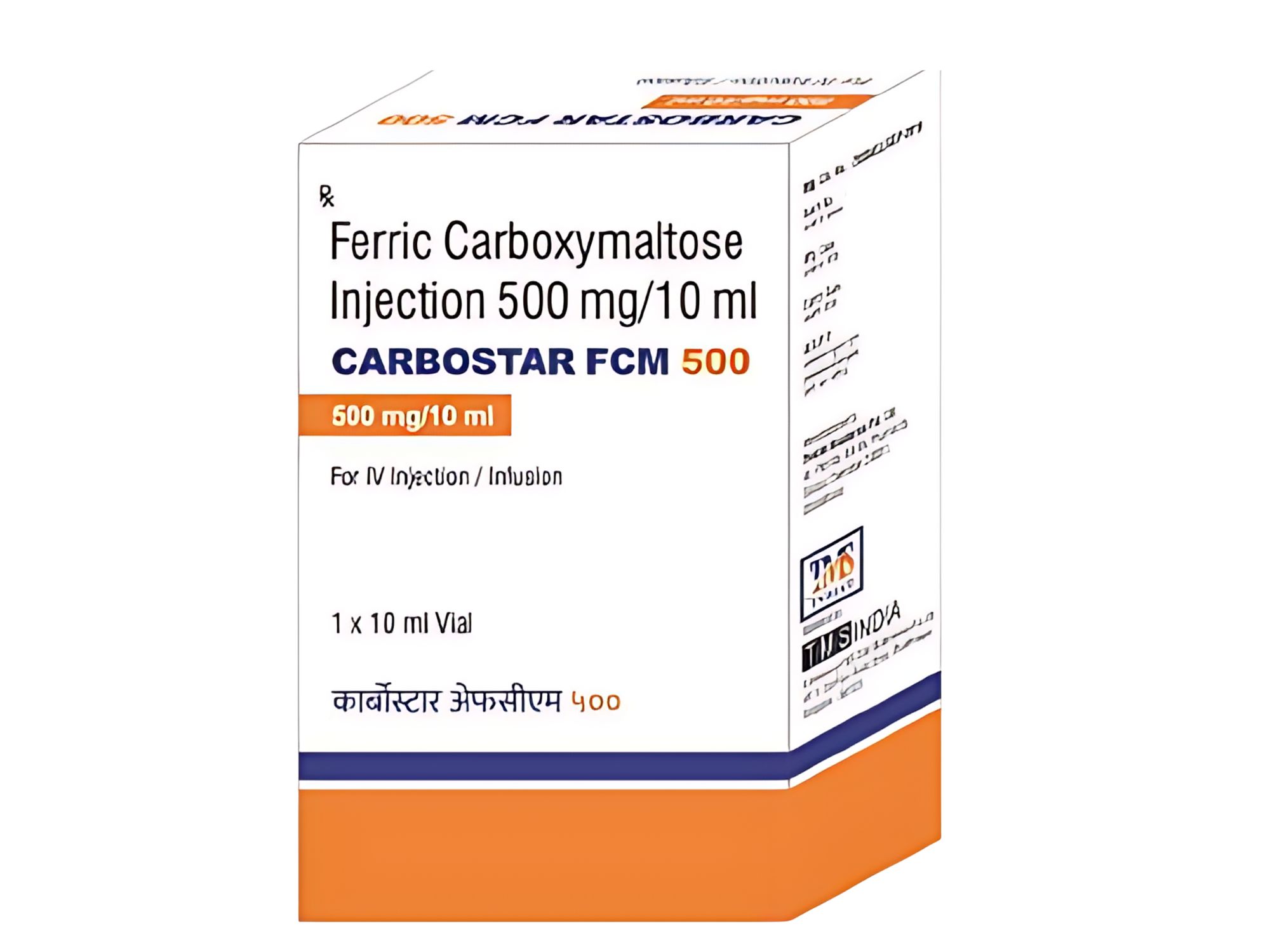 TMS FCM 500MG INJ is an intravenous iron formulation (Ferric Carboxymaltose) used in iron deficiency anemia. It replenishes iron stores quickly, improving hemoglobin levels and reducing fatigue. Especially beneficial for chronic kidney disease, pregnancy, or post-surgery patients.