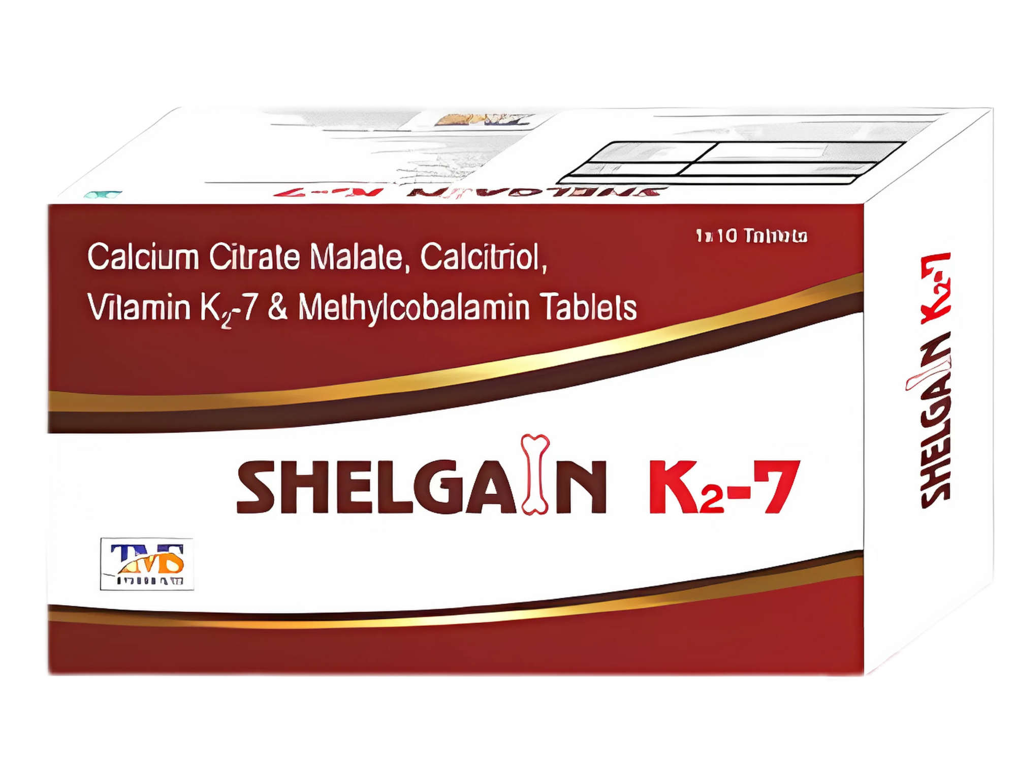 SHELGAIN K2-7 TAB combines Vitamin K2 and D3 to support optimal bone density and arterial health. It prevents calcium deposits in arteries while ensuring calcium reaches the bones. Especially effective in osteoporosis management and cardiovascular wellness. Best used with calcium supplements under medical guidance.