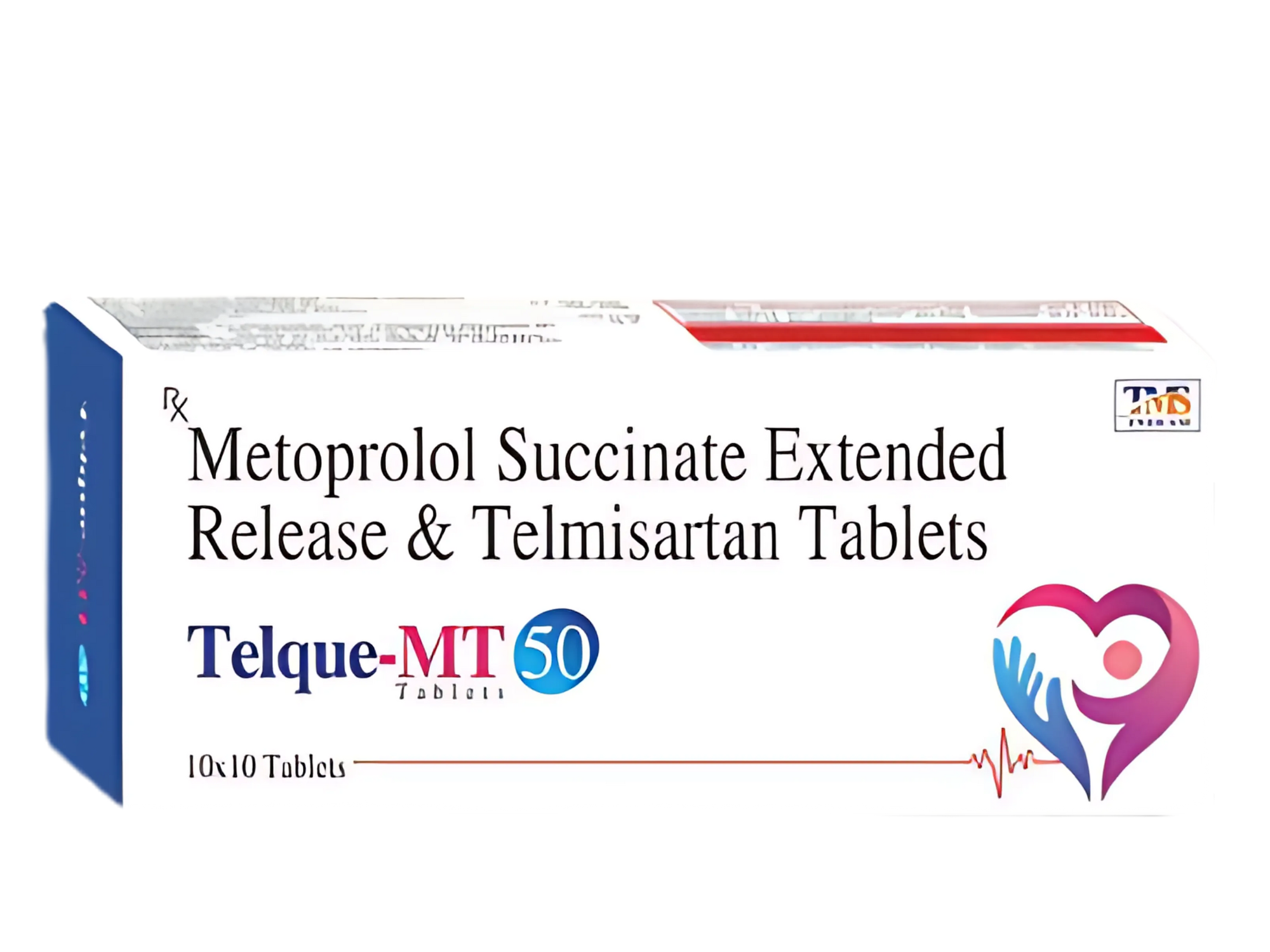 TELQUE – MT 50 TAB contains Telmisartan and Metoprolol 50 mg for more robust cardiovascular protection. It’s used in patients with high blood pressure and a need for heart rate moderation. The dual mechanism ensures stability in both BP and cardiac output.