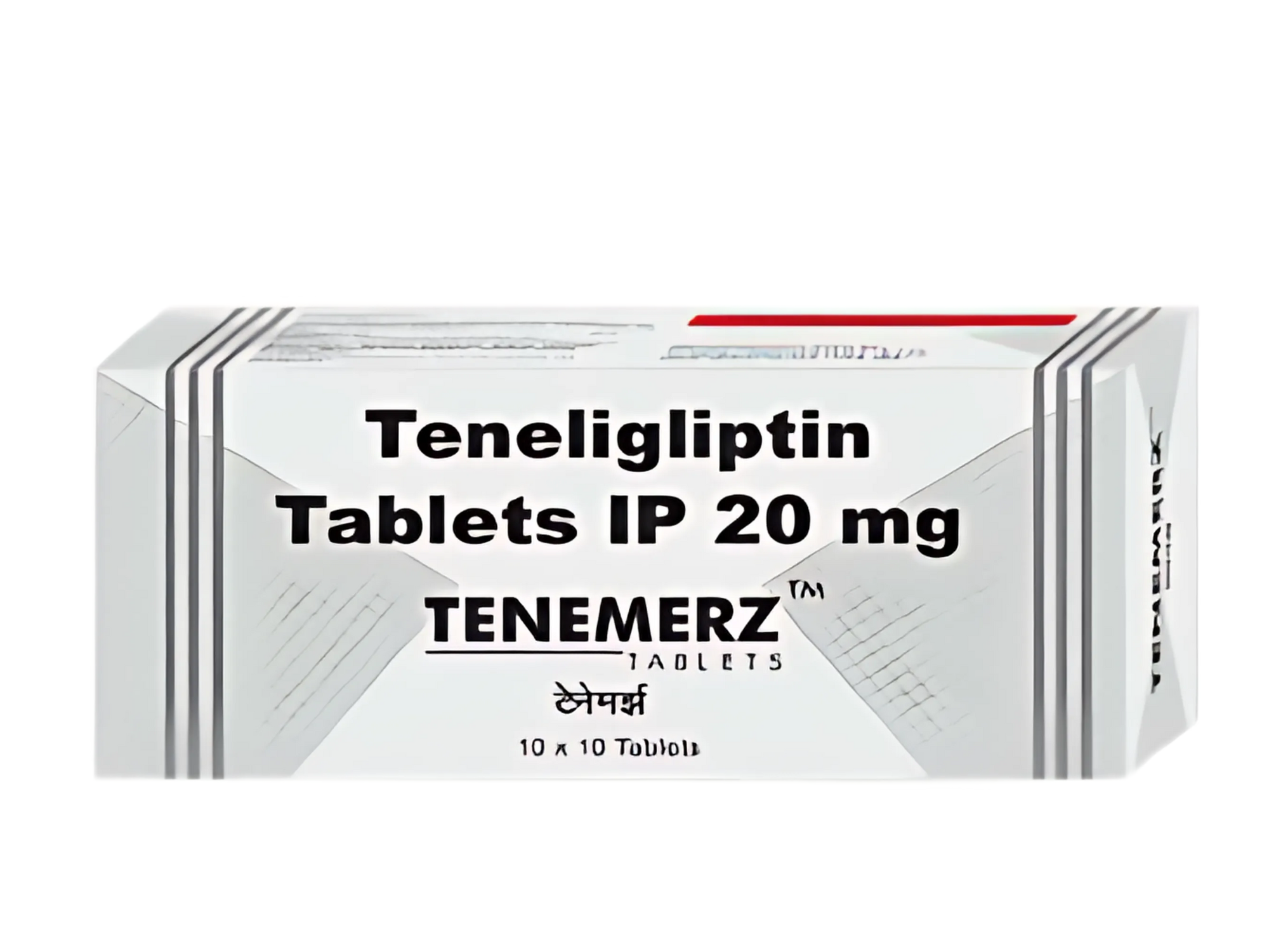 TENEMERZ 20 TAB contains Teneligliptin 20 mg, a DPP-4 inhibitor used in Type 2 Diabetes. It improves insulin secretion and controls blood glucose levels post meals. It can be used alone or in combination, with minimal risk of hypoglycemia and weight gain.
