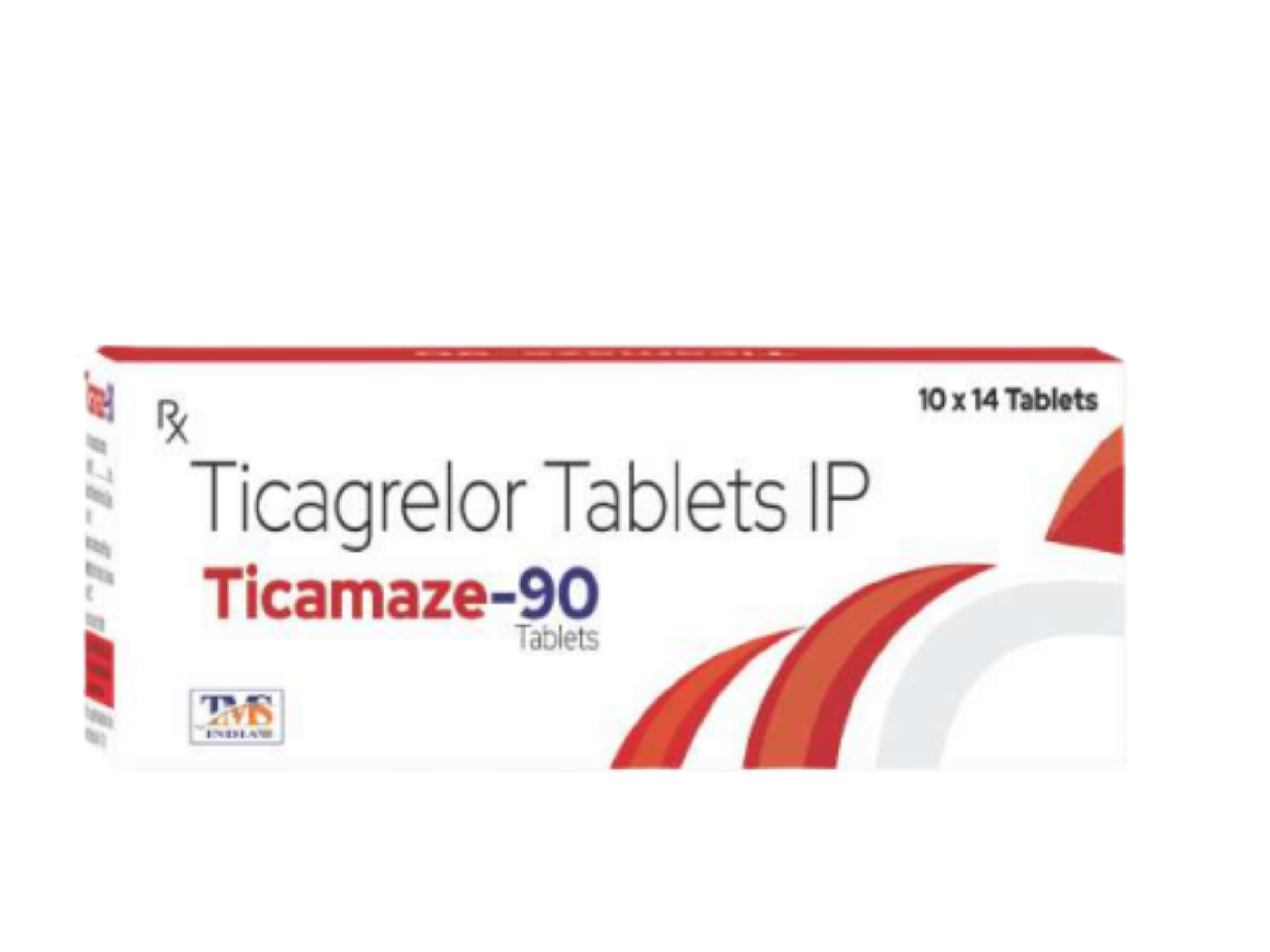 TICAMAZE 90 TAB contains Ticagrelor 90 mg, an antiplatelet agent used in acute coronary syndrome (ACS) and post-angioplasty cases. It prevents clot formation, reducing the risk of stroke or heart attack. A crucial therapy for cardiovascular event prevention.