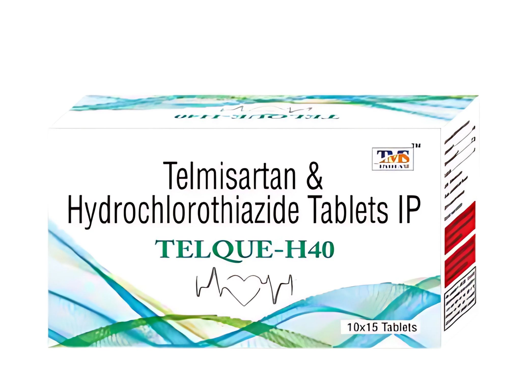 TELQUE – H 40 TAB includes Telmisartan 40 mg and Hydrochlorothiazide. The combination offers potent blood pressure reduction and diuresis. It is especially helpful in salt-sensitive hypertension or those with mild fluid overload. Recommended for long-term cardiovascular protection.