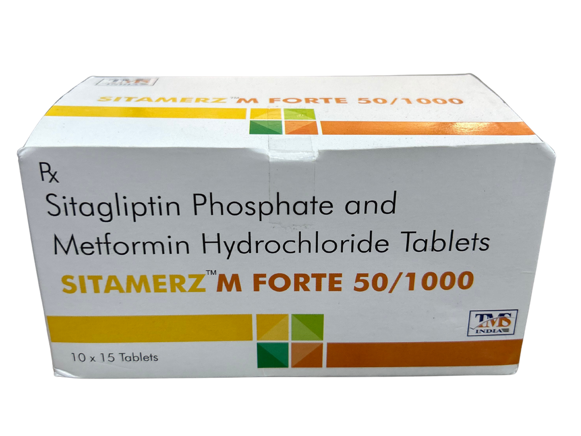 SITAMERZ M FORTE 50/1000 is a powerful blend of Sitagliptin and high-dose Metformin (1000 mg). It’s ideal for patients needing strong glycemic control. It enhances insulin sensitivity and helps reduce complications associated with diabetes. Routine use ensures long-term sugar management with minimal side effects.