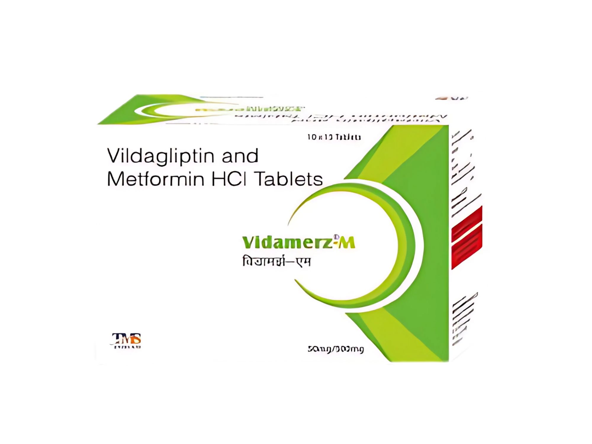 VIDAMERZ M TAB is a fixed-dose combination of Vildagliptin and Metformin. It targets both fasting and postprandial glucose, improving glycemic control in Type 2 Diabetes. The synergistic effect enhances glucose metabolism with a lower risk of hypoglycemia.