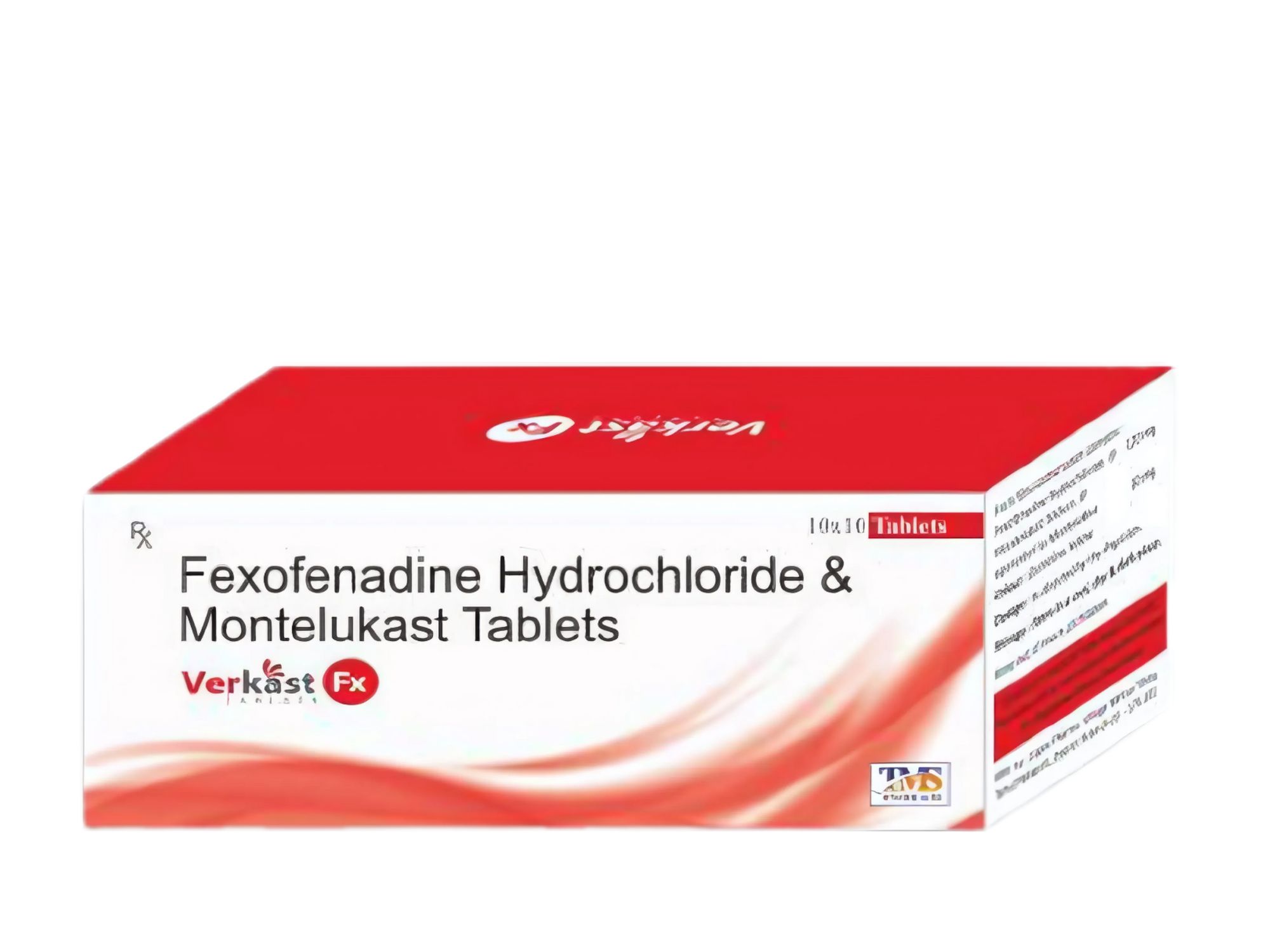 VERKAST FX TAB is a combination of Fexofenadine and Montelukast. It offers non-drowsy relief from seasonal allergies and asthma. Ideal for patients needing anti-allergic and anti-inflammatory treatment, it helps control sneezing, runny nose, and bronchial symptoms.
